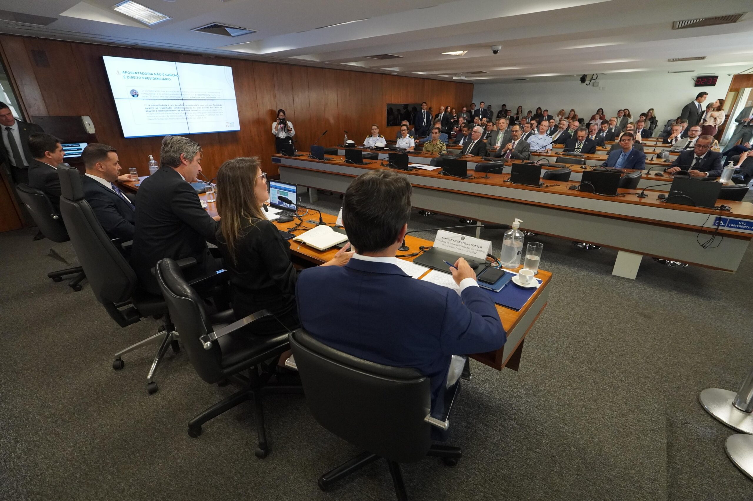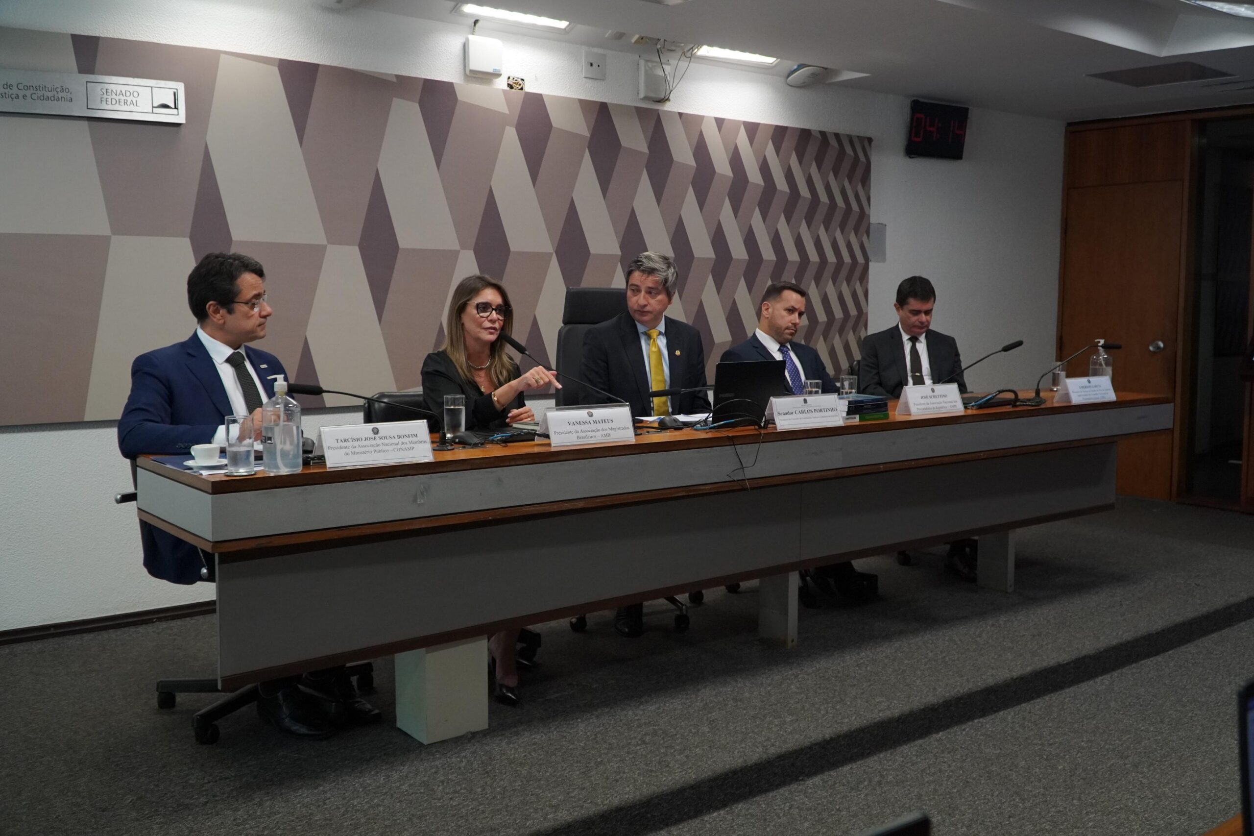Ao lado de lideranças associativas, o Presidente Thiago Massad participou, nesta terça-feira (7/4), de audiência pública realizada na Comissão de Constituição Justiça e Cidadania do Senado. As discussões giraram em torno da PEC 3/2024, que, entre outros pontos, prevê o fim da aposentadoria compulsória como forma de punição a Magistrados, membros do Ministério Público e militares. As associações defenderam a manutenção da vitaliciedade, condição fundamental para o exercício independente e seguro da judicatura, que corre o risco de ser derrubada caso o texto atual seja aprovado. A votação da PEC 3/2024 está prevista para ser votada pela CCJ nesta quarta-feira (8/4).
