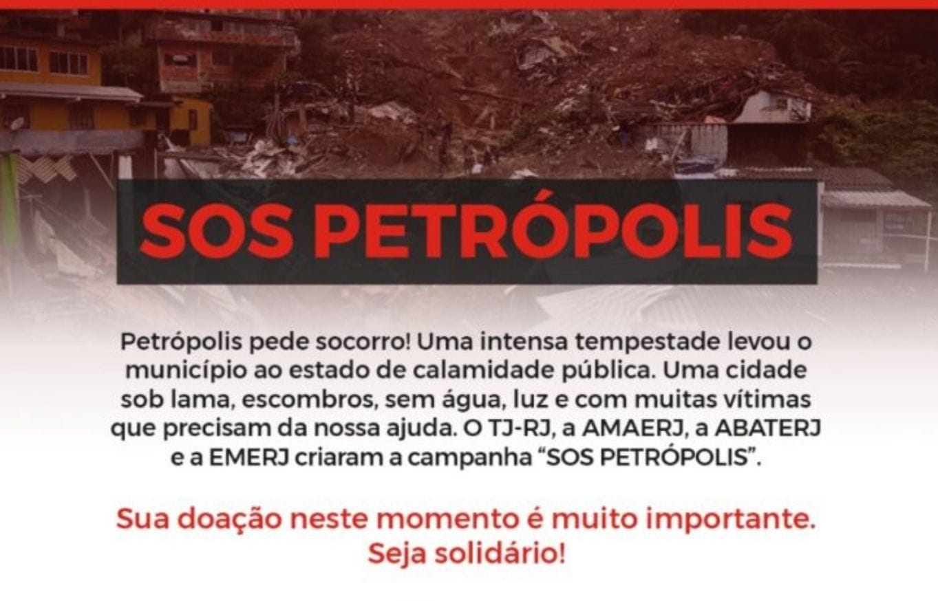 Tribunal, AMAERJ, ABATERJ e EMERJ lançam a campanha ‘SOS Petrópolis’ Bárbara Nicácia Garcia Rodrigues2022-02-17T17:39:05-03:0017 de fevereiro de 2022| Ler Mais