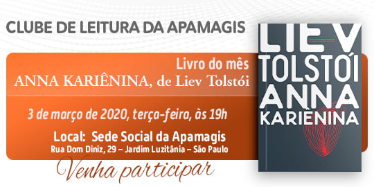 CLUBE DE LEITURA DA APAMAGIS – Mês de março (Livro: ANNA KARIÊNINA, de Liev Tolstói)