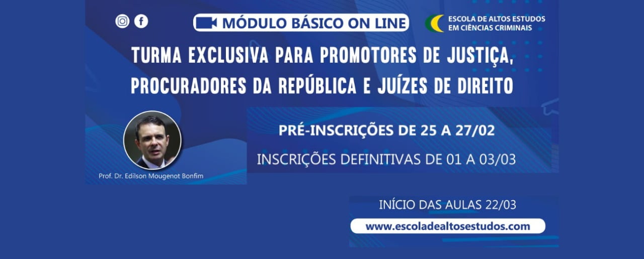 Escola de Altos Estudos em Ciências Criminais recebe pré-incrições para módulo básico de 25 a 27/2Bárbara Nicácia Garcia Rodrigues2021-02-25T13:14:04-03:0025 de fevereiro de 2021|