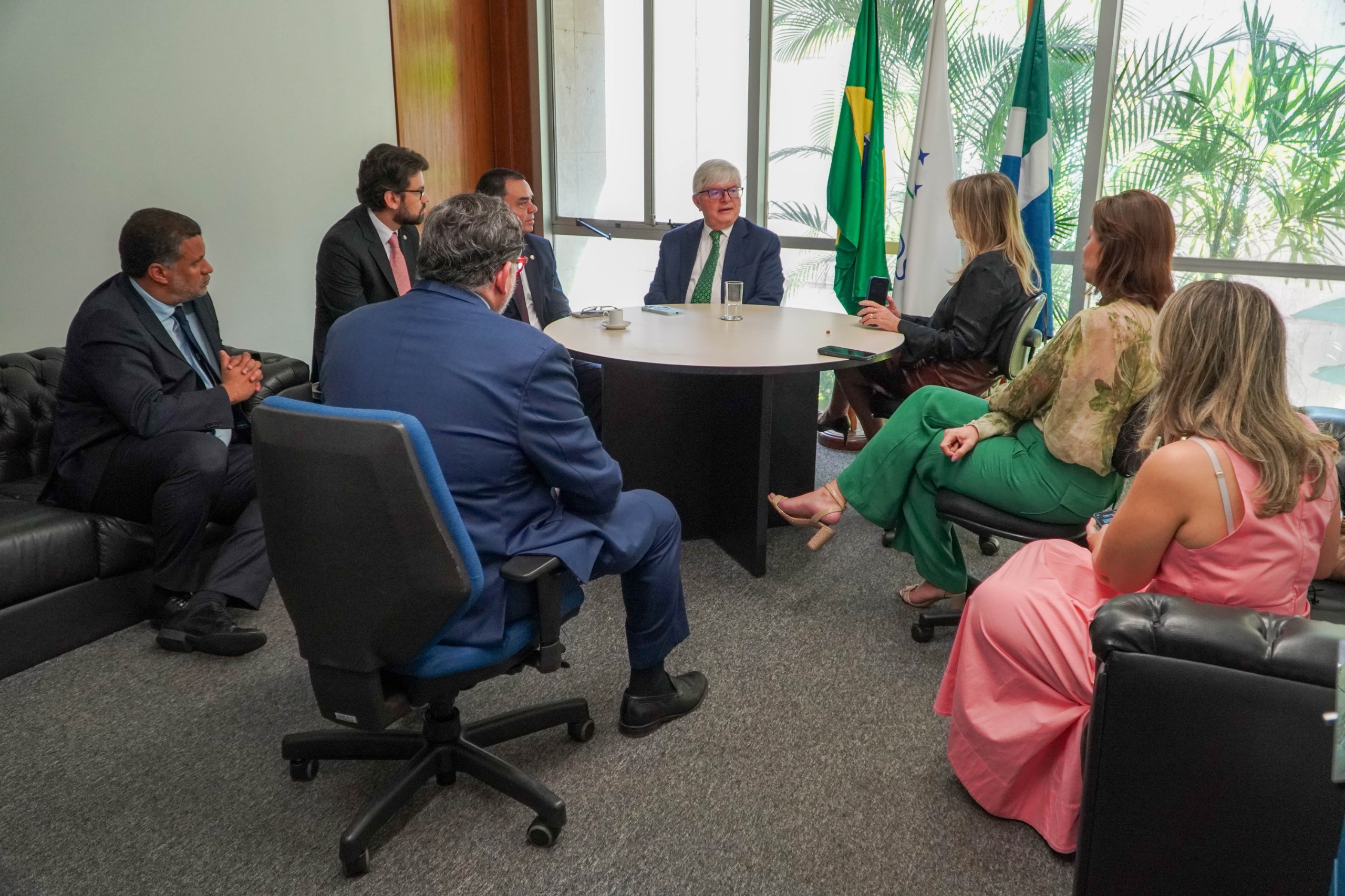 As lideranças associativas também se reuniram com o Senador Jayme Campos (União-MT), membro titular da CCJ, para tratar de pautas legislativas de interesse da Magistratura.