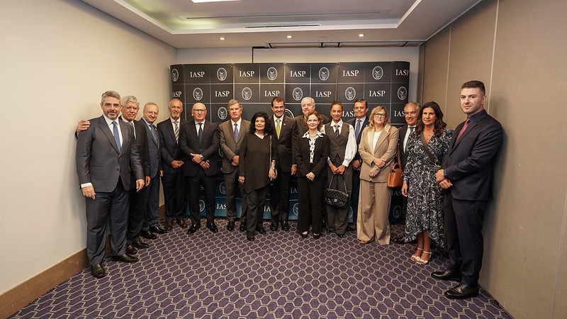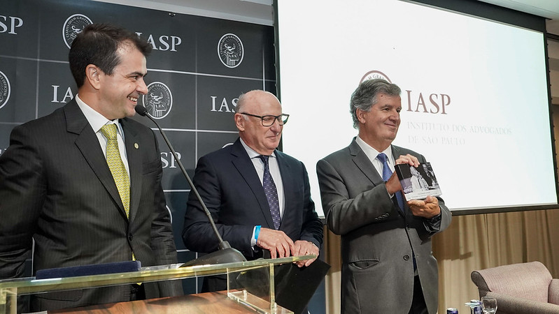 Ao final do encontro, o presidente do TJSP recebeu uma placa de homenagem das mãos do Dr. Rui Fragoso, Ex-Presidente do IASP, em reconhecimento à sua atuação institucional.